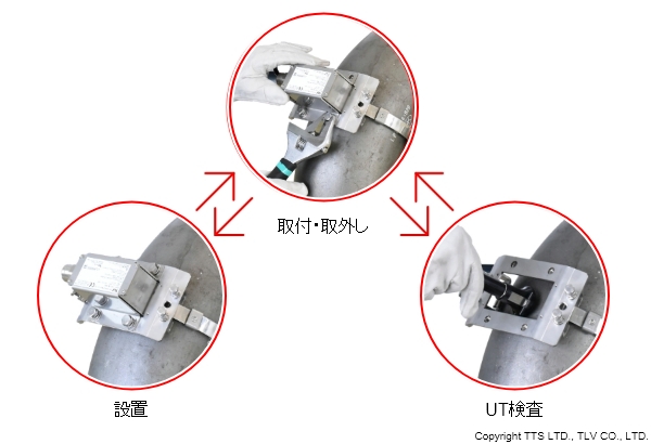 その後、常設型UTによるモニタリングも検討したものの、設置に溶接を要するため、異常がない場合の移設が容易ではないという課題が浮上しました。
