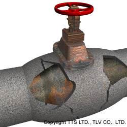 トレースが保温配管内部で破損して蒸気が保温内で漏れ出し、該当配管、もしくは周辺にある配管も腐⾷する。